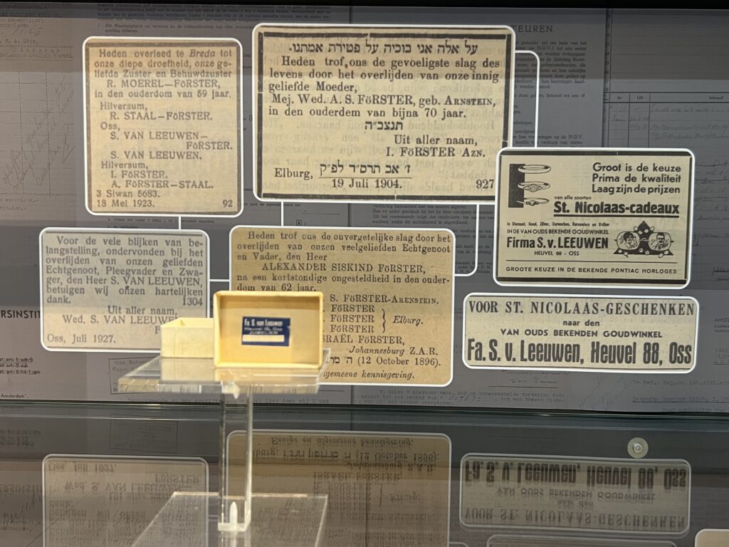 Israël Förster was eigenaar van een juwelierszaak in Oss over. Hij woonde met zijn vrouw Anna Staal boven de winkel. Vlak voor hun deportatie schreef hij in een brief zijn laatste wil, voor als hij en zijn vrouw Anna niet meer terug zouden keren. Hij gaf de brief in bewaring bij zijn vriend en collega Holtkamp. Israël en Anna keerden na de oorlog niet meer terug. Naar later is achterhaald zijn beiden in 1943 in Sobibor omgekomen.
